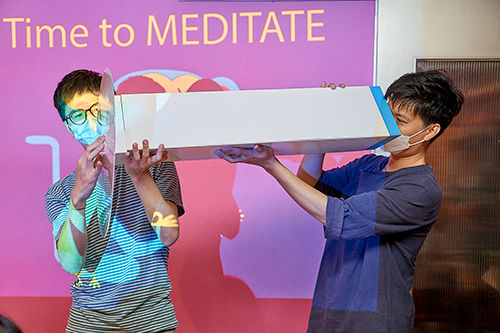 在工作坊中,我們透過製作可換鏡頭的萬花筒,以類比方式,了解心的運作,並透過靜觀(meditation),讓自己專注當下。而持之以恆的練習,能讓自己跟念頭及情緒好好相處,任它們自來自去,不抗拒,也不跟它們狂奔。靜觀雖然簡單,但需常常練習,才能有效。